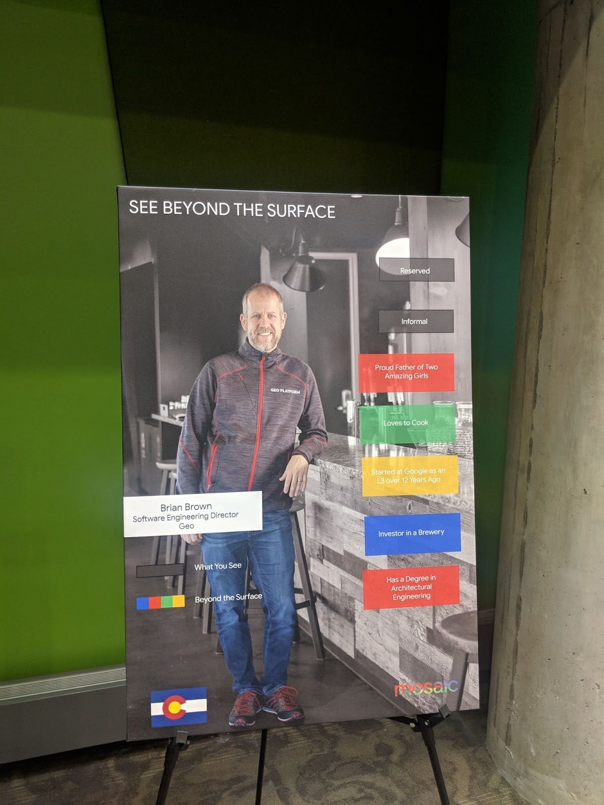 Leaving the office was emotional. “The Google Office” was a special place. And I mean it more than just the Boulder office I just left, because I have been in many buildings there. If you ask any Googler that has traveled to any Google office in any city around the globe, they have had the same experience as I have where they walked up to the door and looked down at that badge reader glowing red on top, swiped their badge and the light turned green, stepping inside into a familiar and comforting world of The Google Office. I will miss that welcoming feeling of being a Googler. And as I stepped out that door, I left The Google Office behind.