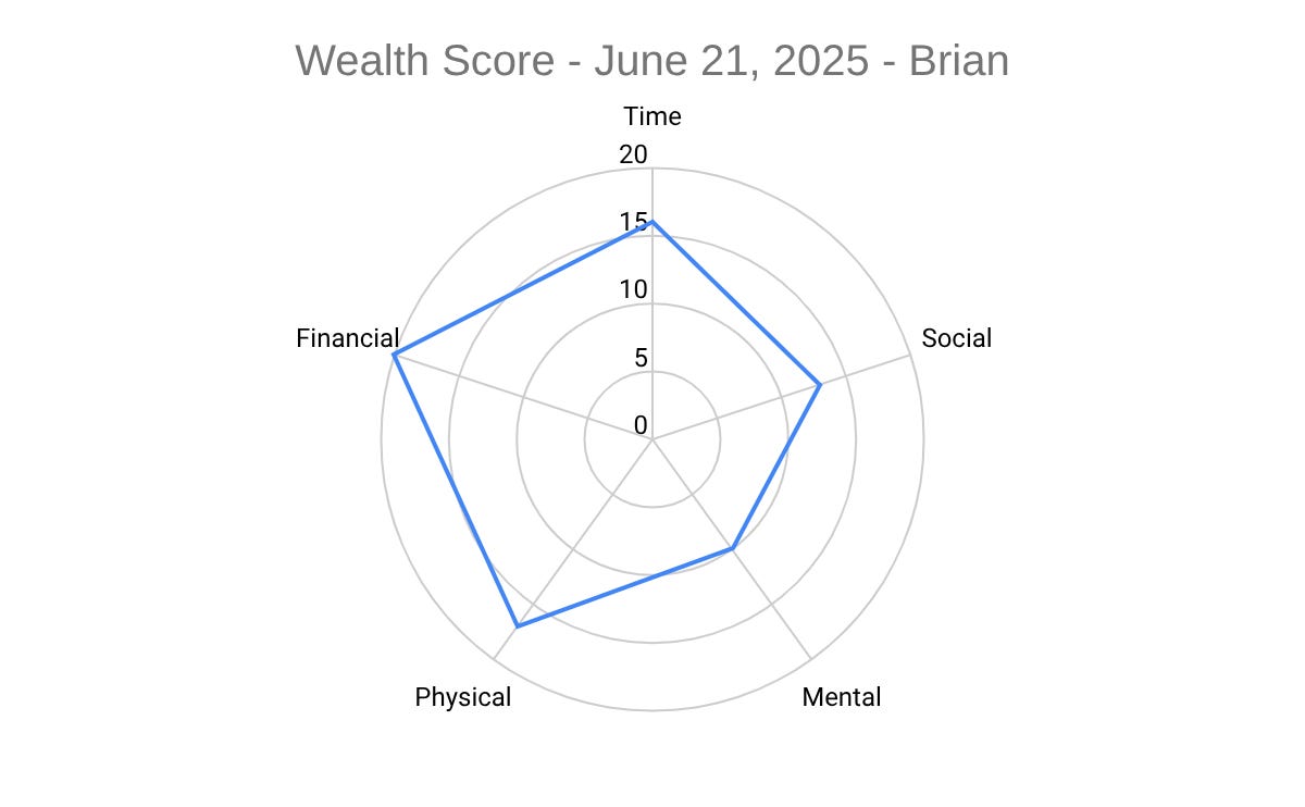 I want to unpack all of the dimensions of this wealth score at some point, but of all the dimensions, Time Wealth was the most dramatic shift from pre-retirement to post-retirement. This didn’t come as a surprise. I knew I would have the opportunity to do new and different things that I didn't have time for before. That is true. What I didn’t expect, and what I am really excited about, is that the flexibility and decreased time pressure has made everything I am doing so much more enjoyable and engaging.